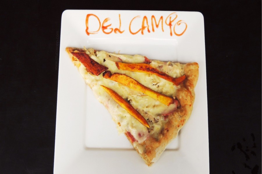 Originada en cocina de campesinos, llega para ti esta innovadora pizza. Tajada de maduro, carne molida, hogao y queso.