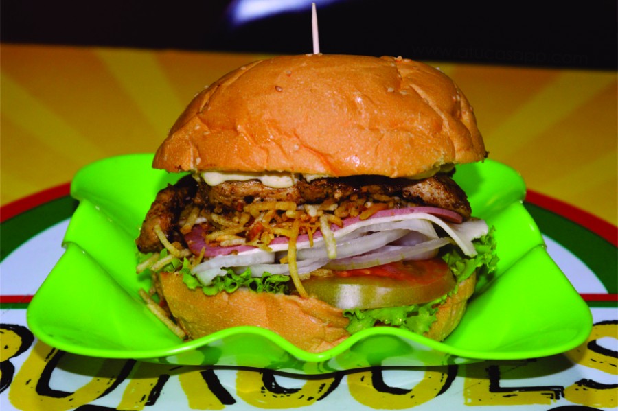 Carne de res, huevo frito, cebolla, tomate, lechuga, jamón, queso y salsas.